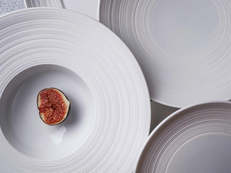 - Белоснежная поверхность с уникальным рельефом. Фирменная текстура коллекции создает благородный фон, на котором любое блюдо выглядит особенно выигрышно. Салаты, горячее, десерты и супы обретают дополнительную выразительность, а внимание гостя фокусируется на главном — цвете, текстуре и гармонии ингредиентов.