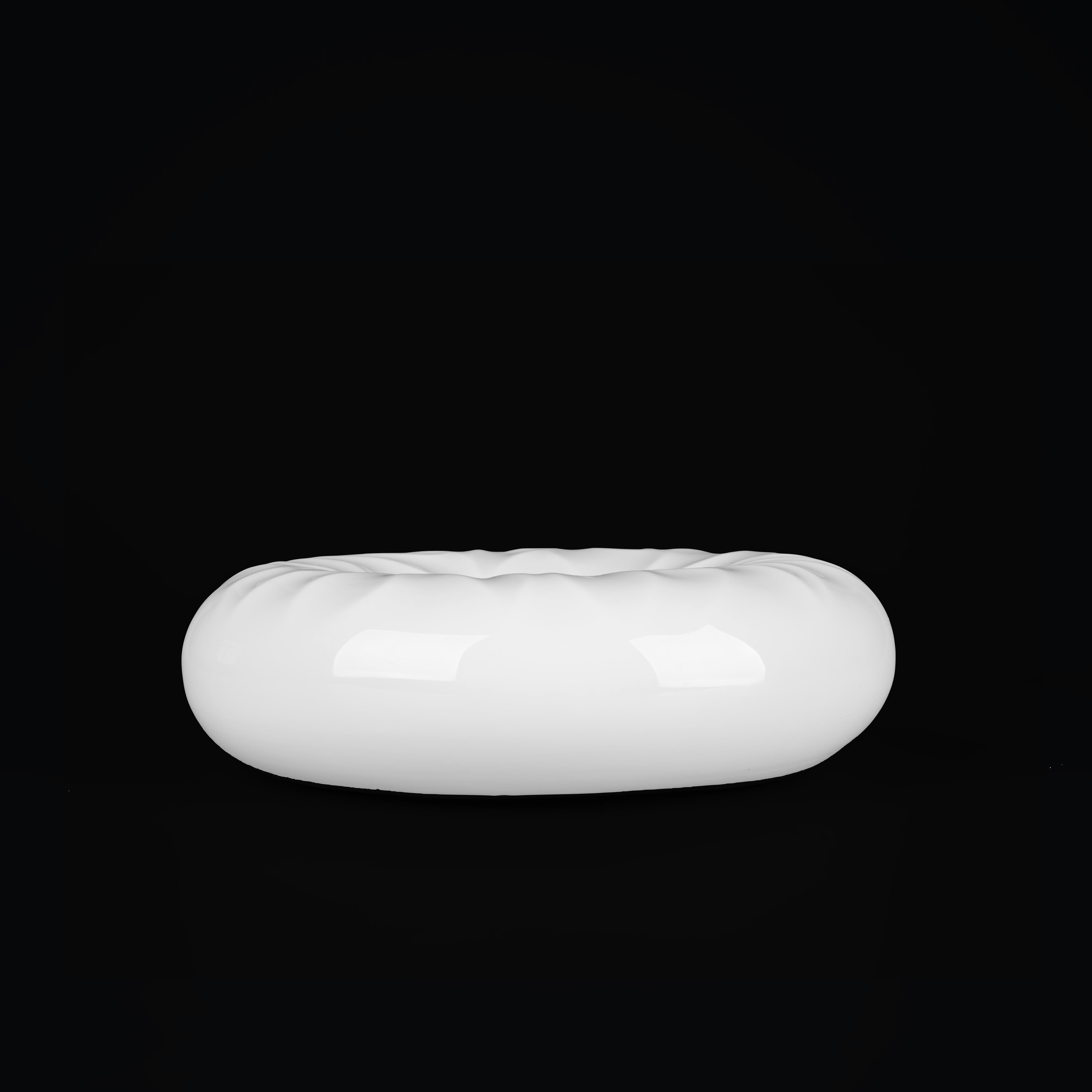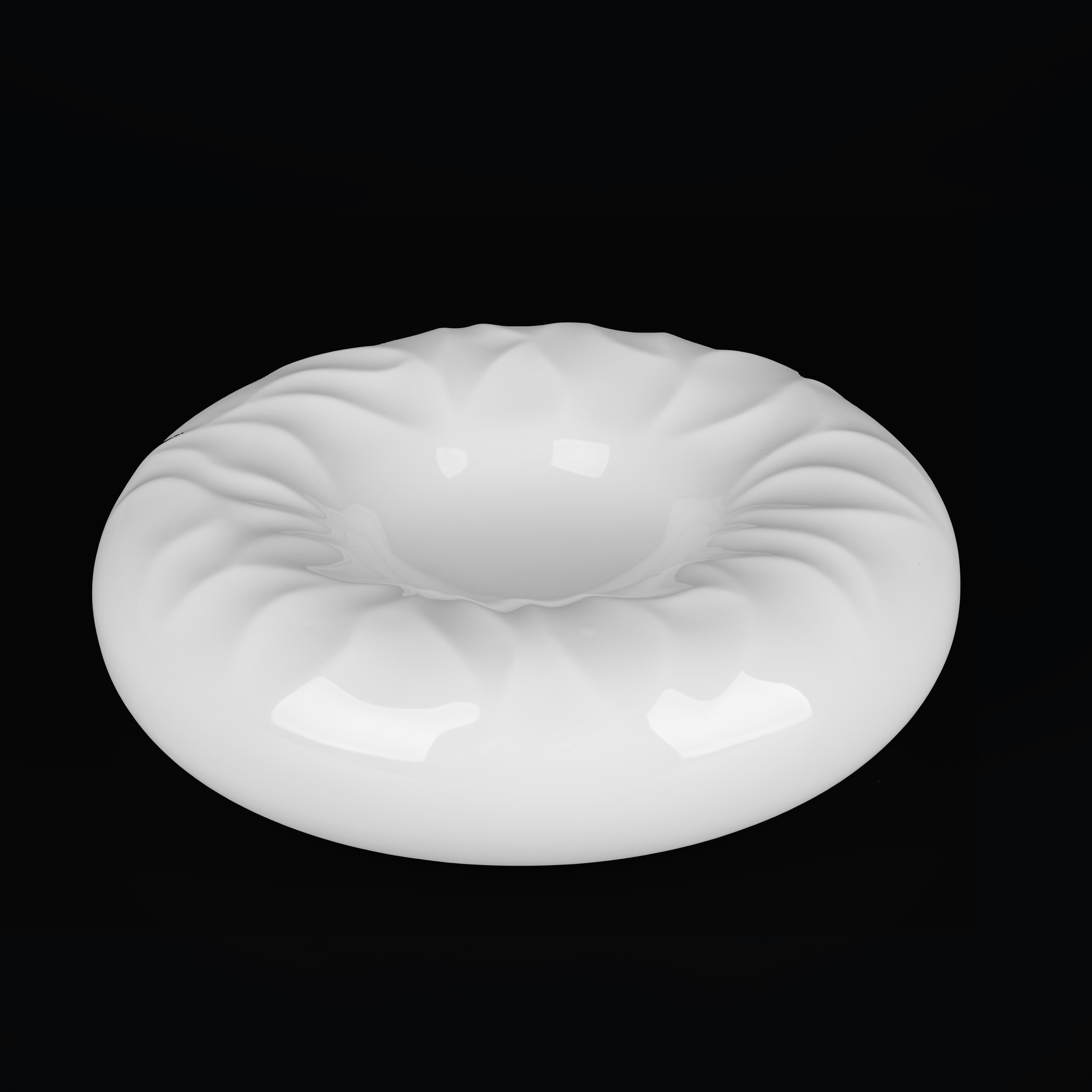 Изысканное блюдо необычной формы в виде бублика из костяного фарфора диаметром 19 см. Дизайн в стиле оригами придает ему скульптурную форму с четкими геометрическими линиями, которая эффектно смотрится в любой сервировке.